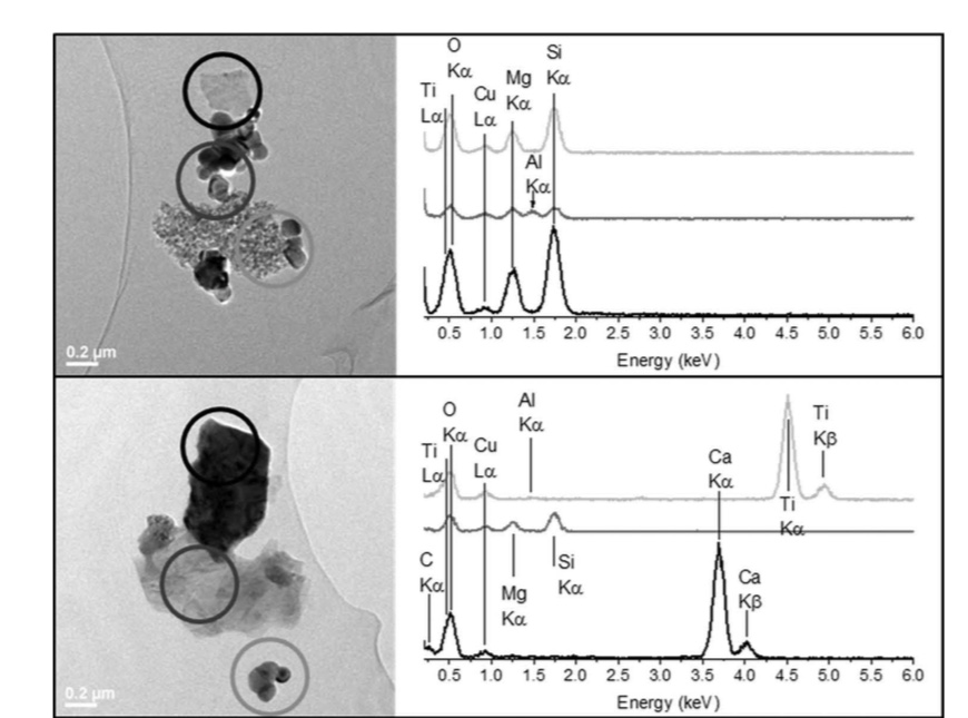 Abstract : Titanium dioxide is a metal oxide used as a white pigment in many food categories, including confectionery. Due to differences in the mass fraction of nanoparticles contained in TiO2, the estimated intakes of TiO2 nanoparticles differ by a factor of 10 in the literature. To resolve this problem, a better estimation of the mass of nanoparticles present in food products is needed. In this study, we focused our efforts on chewing gum, which is one of the food products contributing most to the intake of TiO2. The coatings of four kinds of chewing gum, where the presence of TiO2 was confirmed by Raman spectroscopy, were extracted in aqueous phases. The extracts were analysed by transmission electron microscopy (TEM), X-ray diffraction, Fourier Transform Raman spectroscopy, and inductively coupled plasma atomic emission spectroscopy (ICP-AES) to establish their chemical composition, crystallinity and size distribution. The coatings of the four chewing gums differ chemically from each other, and more specifically the amount of TiO2 varies from one coating to another. TiO2 particles constitute the entire coating of some chewing gums, whereas for others, TiO2 particles are embedded in an organic matrix and/or mixed with minerals like calcium carbonate, talc, or magnesium silicate. We found 1.1 ± 0.3 to 17.3 ± 0.9 mg TiO2 particles per piece of chewing gum, with a mean diameter of 135 ± 42 nm. TiO2 nanoparticles account for 19 ± 4% of all particles, which represents a mass fraction of 4.2 ± 0.1% on average. The intake of nanoparticles is thus highly dependent on the kind of chewing gum, with an estimated range extending from 0.04 ± 0.01 to 0.81 ± 0.04 mg of nano-TiO2 per piece of chewing gum. These data should serve to refine the exposure scenario.